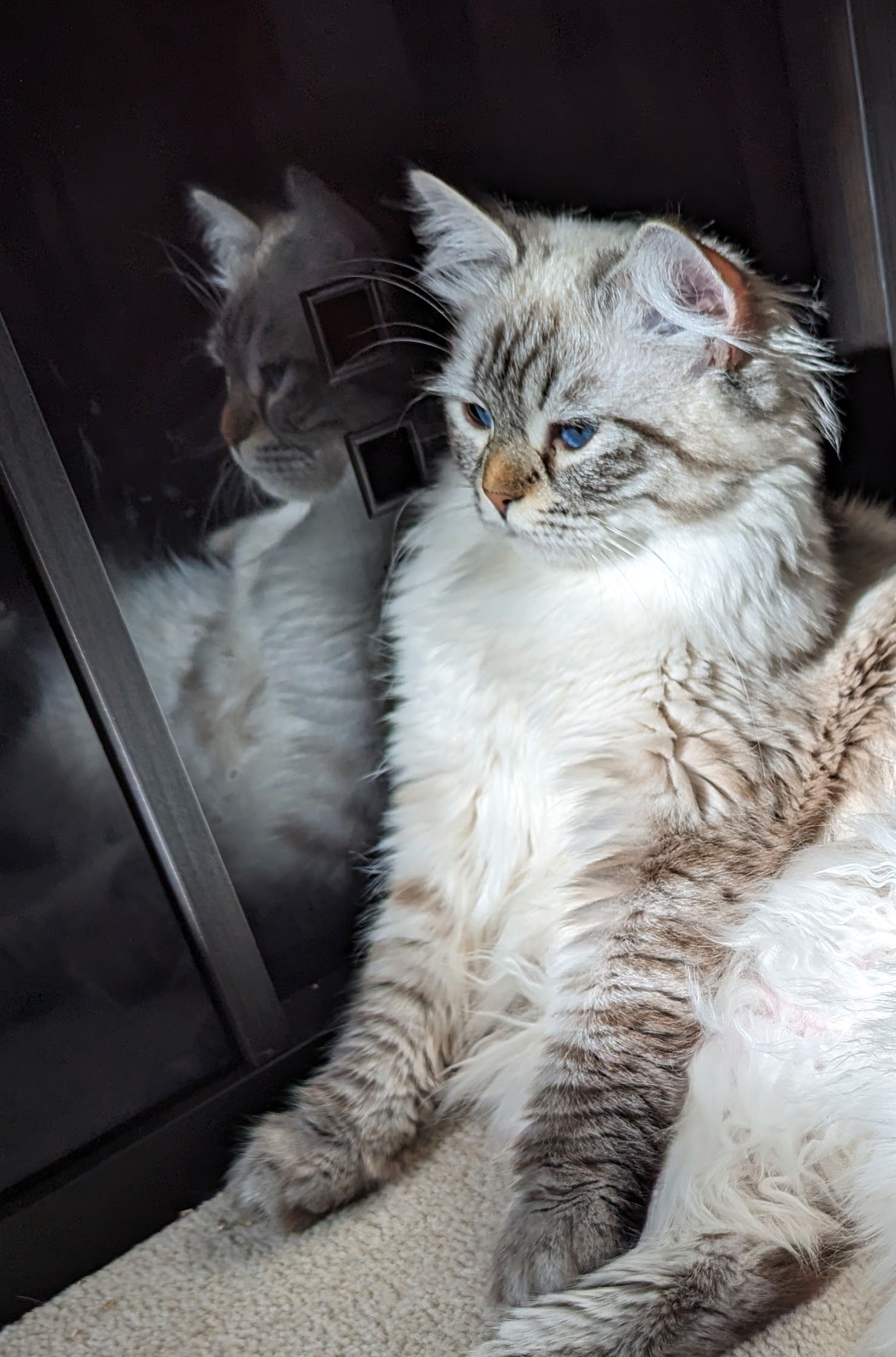 He was born on 25. 05. 2022. He is imported from a top cattery in Poland. He has a 5 * pedigree. He is a Siberian Neva-Masquerade, n 0921 he is a big muscular, gentle boy.